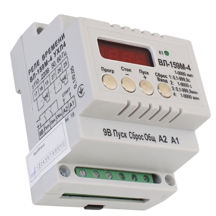 Реле времени многофункциональное ВЛ-159М-4 используется на промышленных предприятиях Укрины для выдачи команды в цепи управления схем автоматики и других устройств после отработки предварительно установленной выдержки времени или после отсчета заранее заданного количества импульсов – при использовании его в качестве счетно-импульсного реле.